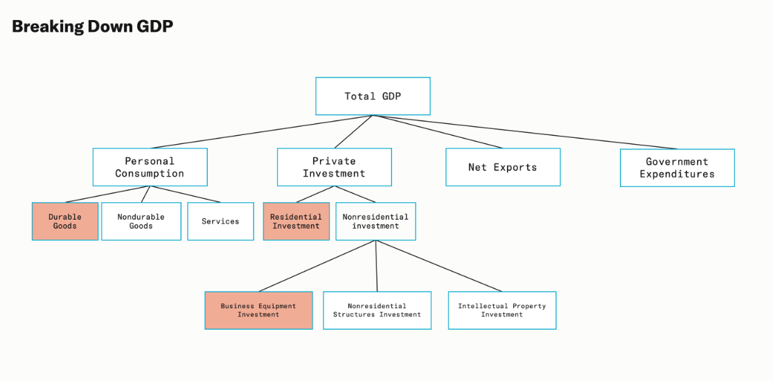 Changes in the economy stem from a few select categories that contribute to GDP. EPB argues that these three components are the most sensitive to change and other areas of the economy tend to be more sticky/stable.